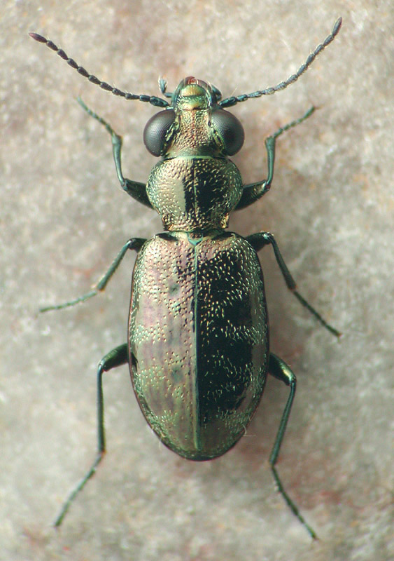 This particular site is here, in Alaska. The soil is damp, with mosses, liverworts, and other small plants, and there is a bit of leaf litter. Bembidion grapii is common in the same habitat. In the center of the following picture, a small Asaphidion are scampering on the soil, and under litter.