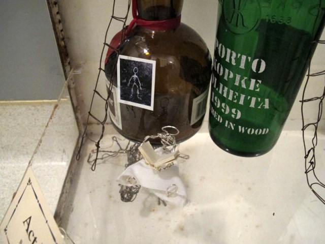 The young woman, desiring to tame the dragon, is pouring some port into a bowl, as an offering.